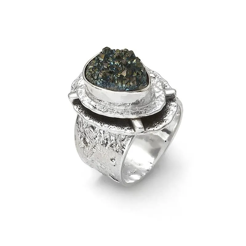 Pierścionek ozdobiony kwarcem tytanowym świetnie komponuje się ze stylem boho albo codziennymi stylizacjami, jeśli lubisz przełamywać je odrobiną ekstrawagancji. Wyrazista biżuteria oryginalnie podkreśli Twoją dłoń i przykuje spojrzenia za sprawą eleganckiej i intensywnej kolorystyki wyrażonej w kobiecy i subtelny sposób. Ponadto srebro najwyższej próby 925 gwarantuje trwałość pierścionka przez długie lata.
