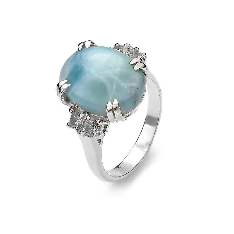 Zachwyć się błękitnym odcieniem larimaru w pięknym modelu pierścionka. To srebrny pierścionek z dużym kamieniem o klasycznej formie. Okazały kamienień o nazwie larimar w otoczeniu delikatnych kryształów górskich jest wymownym symbolem kobiecości. Jasna kompozycja biżuterii wyróżnia się na tle kobiecej dłoni, a niecodzienny kolor klasycznie osadzonego kamienia przykuwa uwagę i podkreśla wyjątkowość projektu. Ten srebrny pierścionek z naturalnym kamieniem to piękna ozdoba i doskonały prezent w atrakcyjnej cenie.