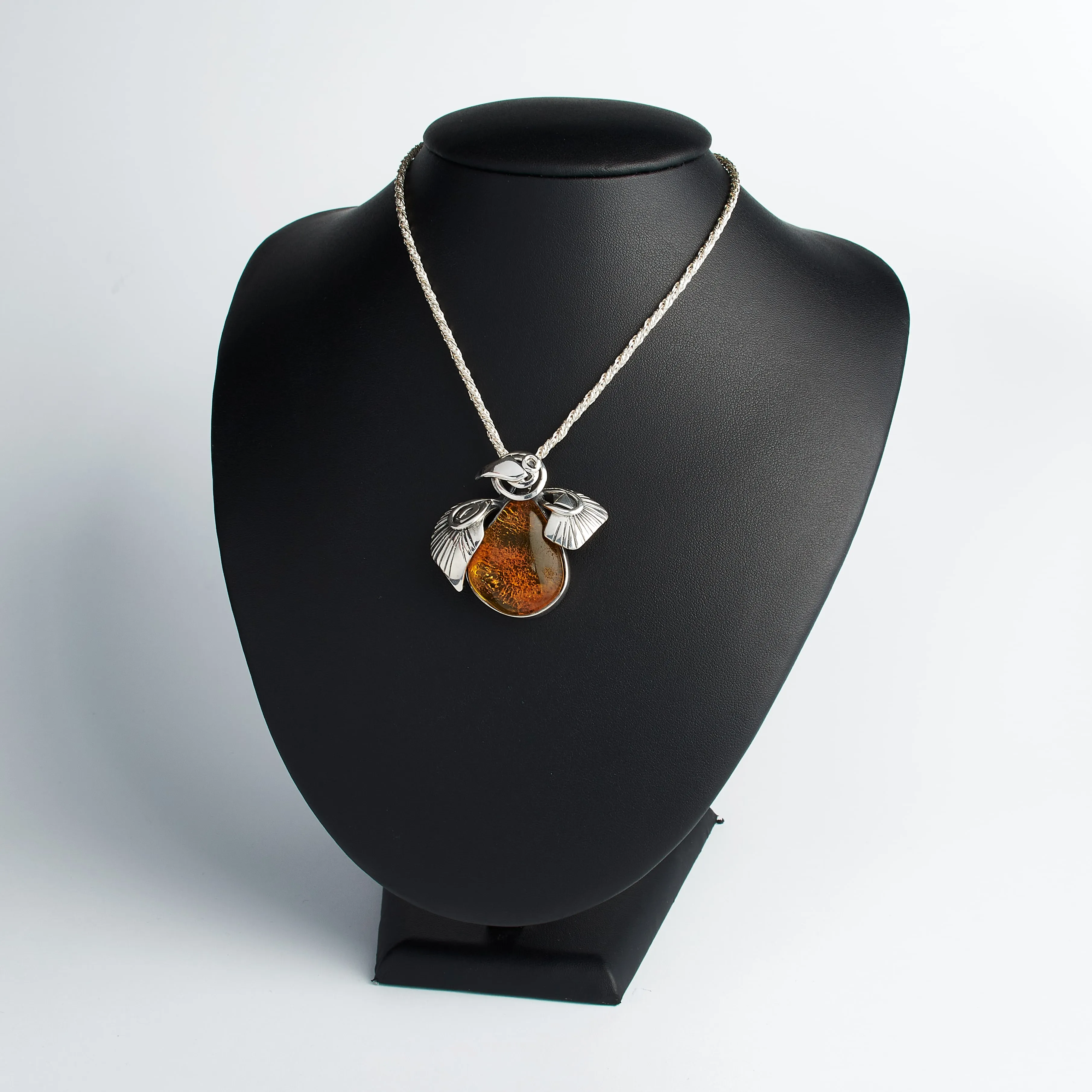 Srebrny wisior z bursztynem w kształcie ptaka oznacza pokój oraz świętość. W tym oryginalnym wisiorku połączono srebrne skrzydła i głowę ptaka ze sporym kawałkiem oszlifowanego bursztynu. Wisior z bursztynu w srebrze z ptakiem nadaje właścicielowi lekkości, a także wpływa na jego samozadowolenie. Jeśli jesteś osobą, dla której oprócz atrakcyjnego wyglądu biżuterii liczy się także jej symbolika, to ten wisiorek z pewnością przypadnie Ci do gustu.