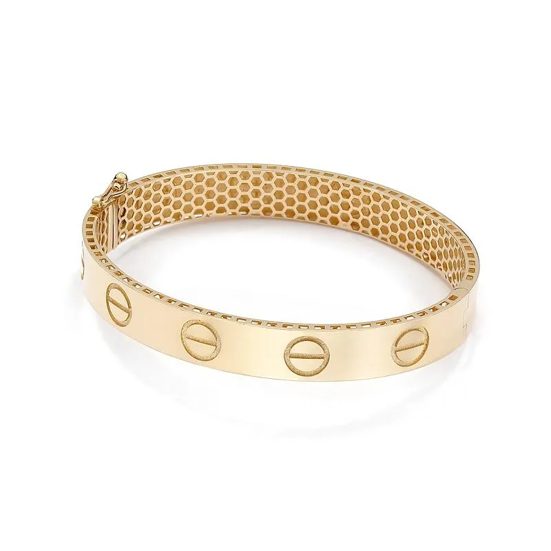 Złota sztywna bransoletka damska to dodatek, który wyróżnia się swoją ponadczasową formą. Modna od lat sztywna złota bransoletka daje wiele możliwości dopasowania jej do obowiązujących trendów i różnorodnych gustów. Bransoletka ma prosty, ale efektowny design, który pasuje do wielu stylizacji. Dokładnie przeanalizowany został jej projekt również pod względem wygody noszenia. Powierzchnia bransoletki jest gładka i lśniąca, co podkreśla jej luksusowy charakter. Wzór plastra miodu na wewnętrznej stronie bransolety zapewnia dodatkowy komfort noszenia. Solidne, dyskretne zapięcie gwarantuje, że bransoletka pozostanie na swoim miejscu przez cały dzień. Jest to idealny dodatek do eleganckich wieczorowych kreacji, jak również do formalnych stylizacji biurowych. Można ją nosić z elegancką sukienką na specjalne okazje. Na co dzień bransoletka będzie świetnie wyglądać z koszulą i spodniami w stylu smart casual. Wykonana z wysokiej jakości złota, bransoletka ta jest trwała i odporna na codzienne zużycie. Jest to doskonały prezent dla kobiety ceniącej sobie klasyczną elegancję i wysoką jakość biżuterii.