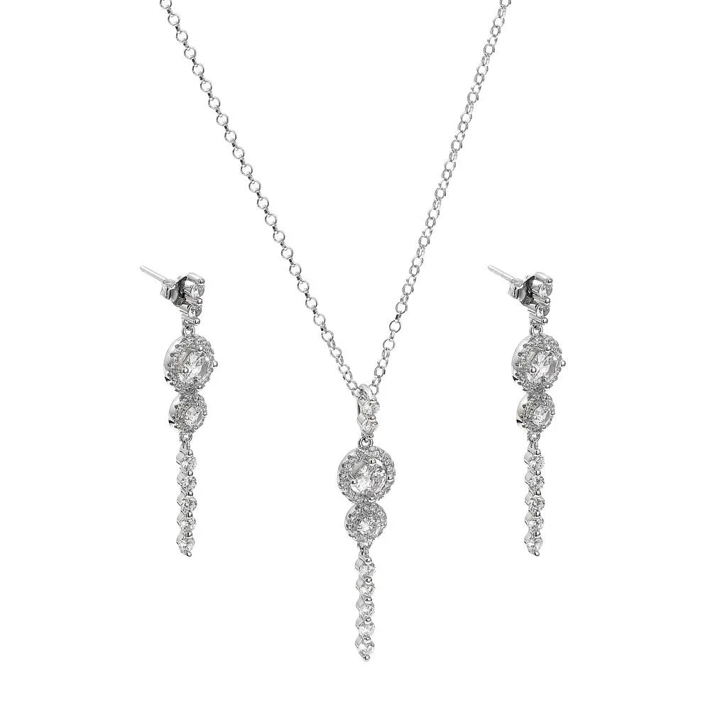 Zestaw srebrnej biżuterii, który proponujemy na zdjęciu, jest typowo wieczorowym zestawem, nastawionym na dodanie blasku. Projekt jednak jest na tyle elegancki, że nie zdominuje Twojej osoby, a jedynie podkreśli urodę – twarz i kobiecy dekolt.