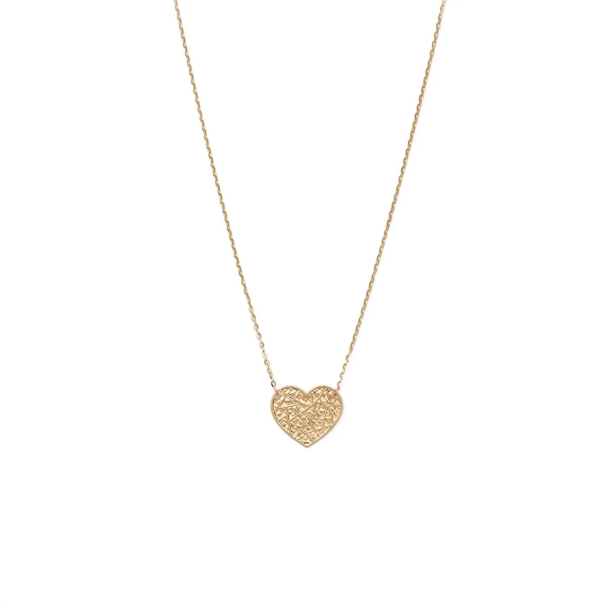 Przepiękny naszyjnik z ozdobnym sercem został wykonany z żółtego złota. Biżuteria zachwyca delikatnością i będzie idealnym symbolem głębokiego uczucia. Nacinany element mimo swej pozornej delikatności zaskakuje wytrzymałością i doda każdej kobiecie wdzięku oraz niezwykłego uroku. Regulacja długości (od 42 do 45 cm) to świetny wybór dla osoby, która nie jest zdecydowana co do tego, jakiej długości naszyjnika potrzebuje.