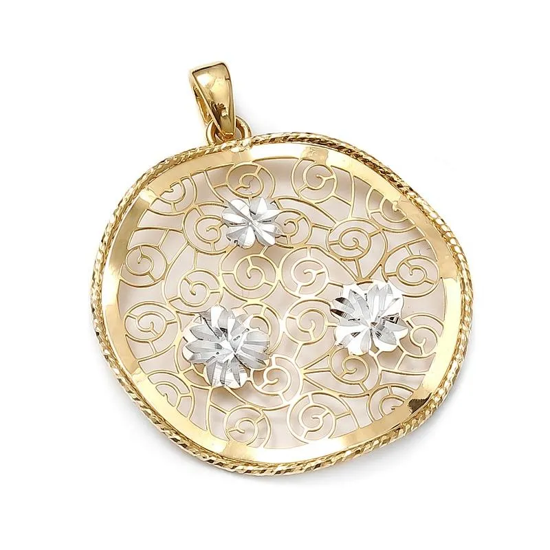 Złota zawieszka ażurowa z ozdobnymi kwiatami