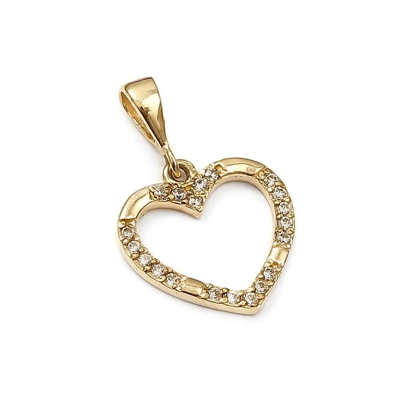 Eleganckie, klasyczne serduszko z żółtego złota próby 585 z błyszczącymi cyrkoniami to idealny prezent na Walentynki. Ponadczasowa forma zawieszki sprawi, że trafi ona w gusta każdej pani lubiącej prostotę i minimalizm. Cyrkonie umieszczone dookoła serduszka nadają mu uroczego charakteru. Zrób niespodziankę swojej ukochanej i podaruj jej złotą biżuterię w pięknej oprawie. Złota zawieszka serduszko bez wątpienia będzie dla niej symbolem Twojej bezgranicznej miłości.