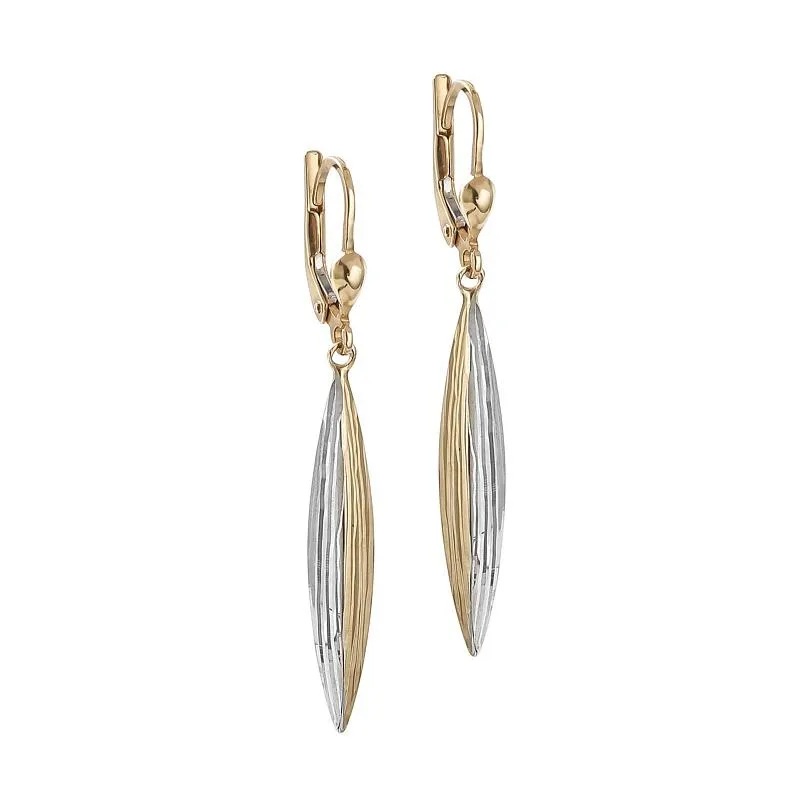 Jeśli chcesz swoją postacią prezentować wyjątkowo elegancki styl, to wybierz złote dwukolorowe kolczyki z angielskim zapięciem. Ta charakterystyczna biżuteria idealnie komponuje się z ekstrawagancką garderobą, tworząc kompozycję, która doskonale przedstawia się podczas wieczorowych uroczystości. Kolczyki wykonane są z wysokiej jakości białego i żółtego złota próby 585 z dbałością o każdy, nawet najmniejszy detal.