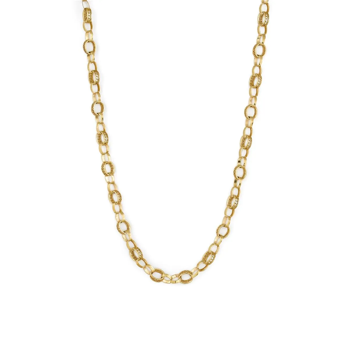 Łańcuszek charakteryzuje się ciekawym splotem. Różnego kształtu ogniwa o różnej powierzchni splecione zostały ze sobą splotem ankier. Dzięki temu, że jedne ogniwa są gładkie, a inne mają oryginalną strukturę – całość przyciąga wzrok do wyjątkowości tego projektu.
