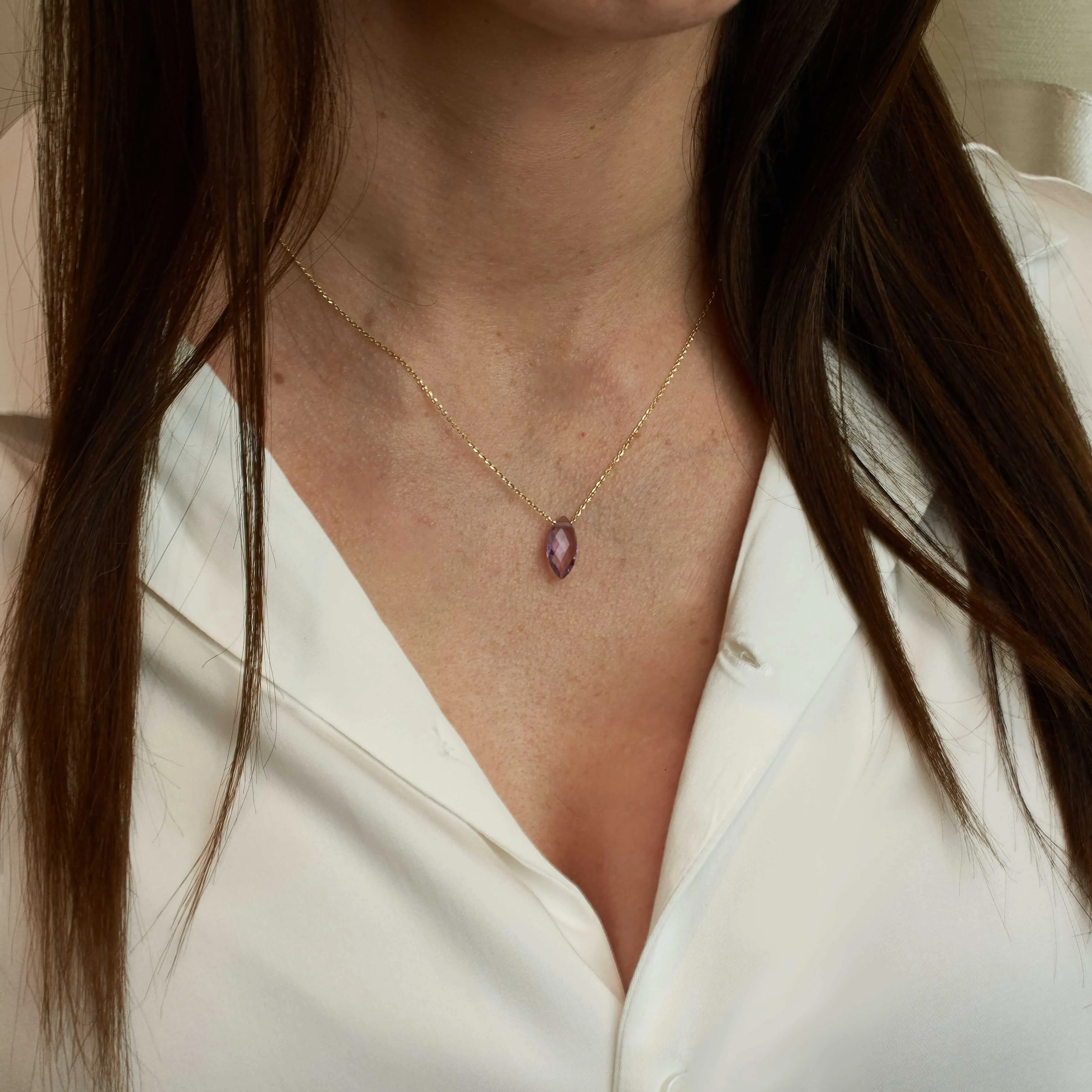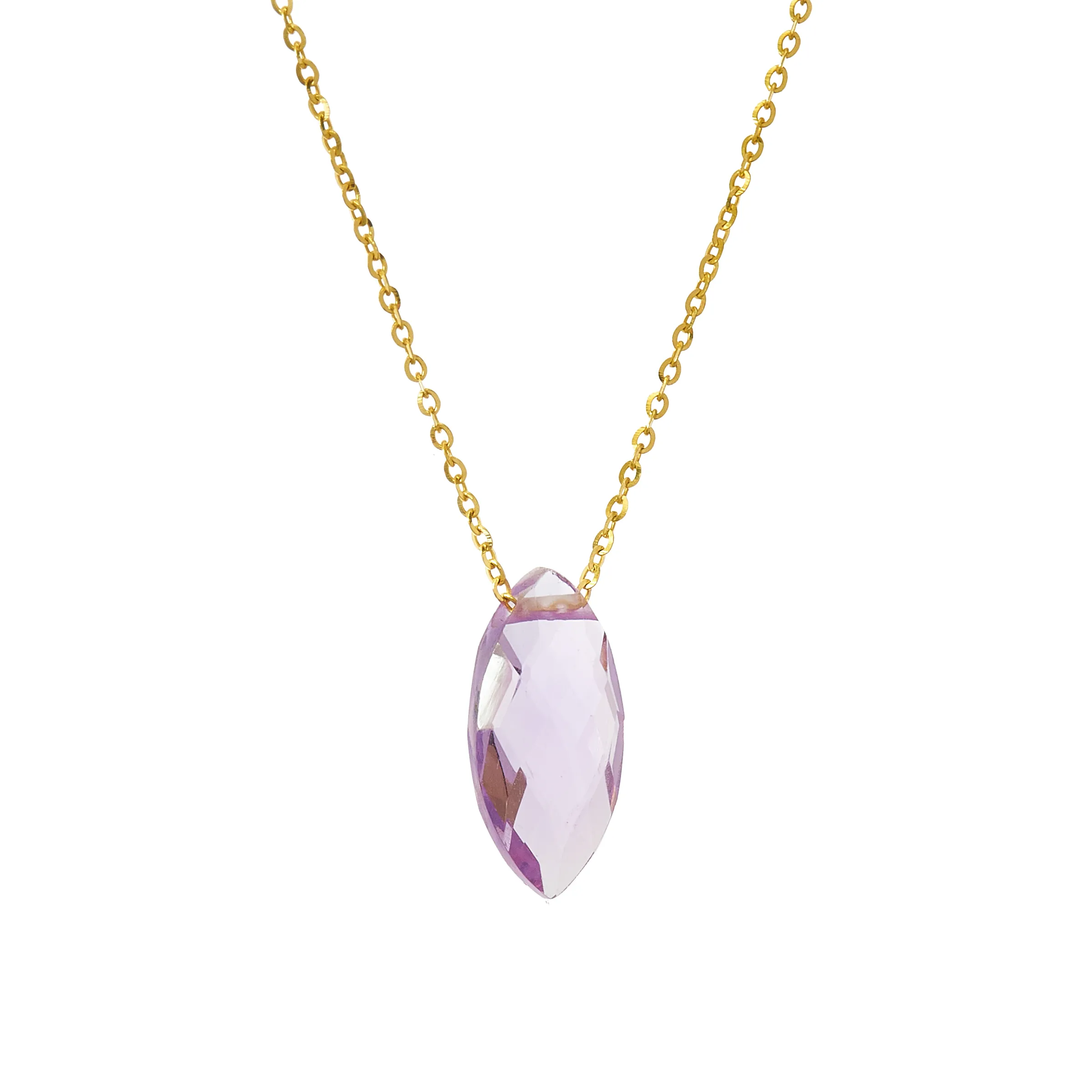 Złoty naszyjnik z ametystem w kształcie markizy