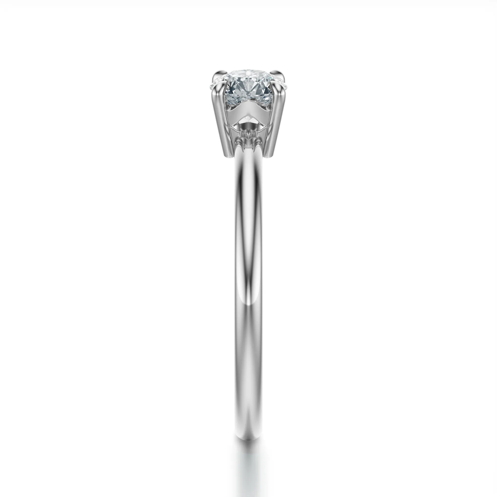 Oprawa typu sześciopazurkowego pięknie eksponuje kamień, nadając pierścionkowi lekkości i nowoczesnego charakteru. Brak dodatkowych zdobień skupia całą uwagę na diamentowym centrum, czyniąc z tego modelu idealny wybór dla kobiet ceniących prostotę i ponadczasowość. To propozycja, która sprawdzi się zarówno jako klasyczny pierścionek zaręczynowy, jak i prezent wyrażający głębokie uczucia. Diament symbolizuje trwałość, czystość oraz lojalność — wartości, które doskonale oddaje ten wyjątkowy model.