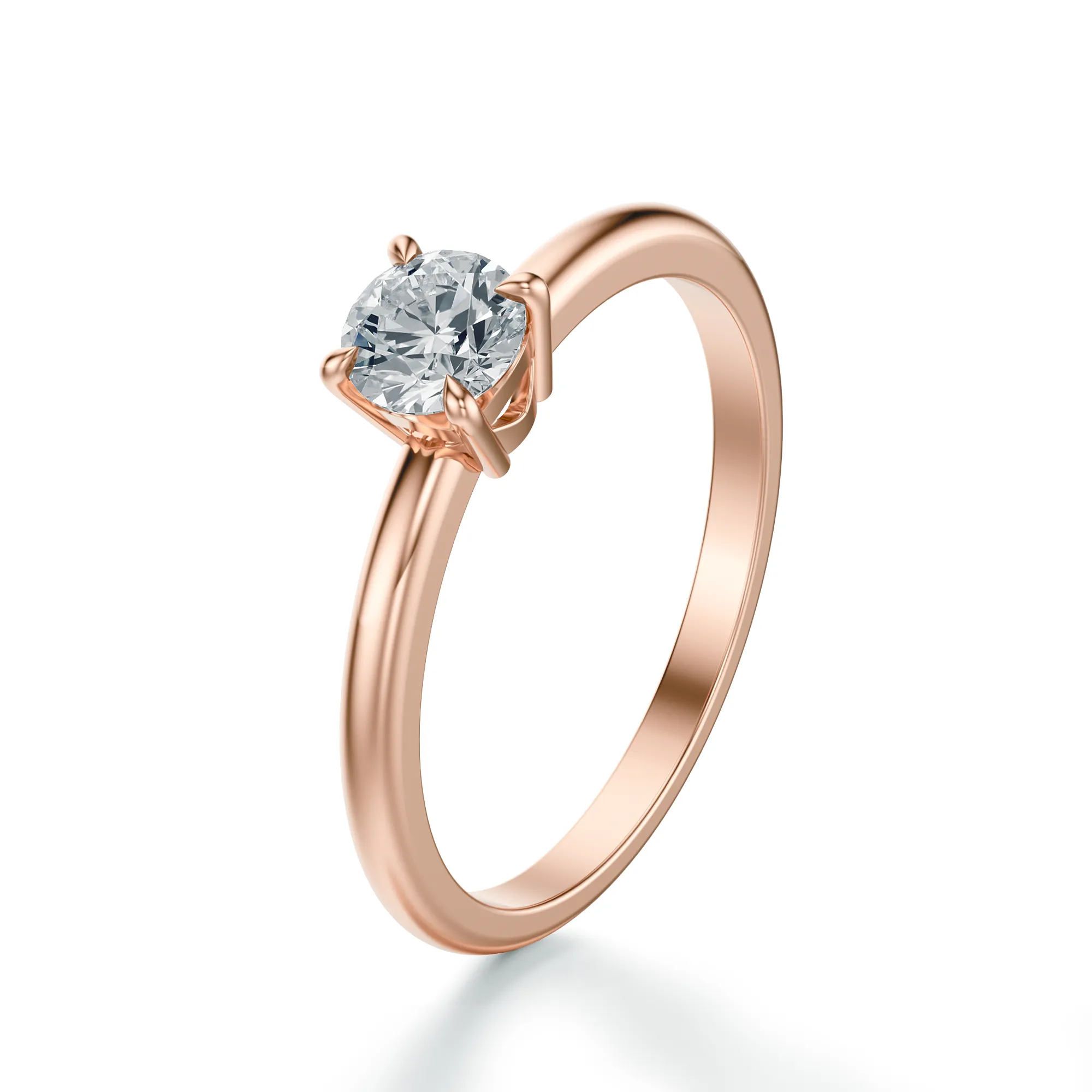 Subtelny, a zarazem niezwykle elegancki pierścionek wykonany z różowego złota o próbie 585 to wyjątkowa propozycja dla miłośników klasyki w nowoczesnym wydaniu. Jego delikatna forma zachwyca harmonią proporcji, a centralny okrągły diament, osadzony w smukłej sześciopazurkowej oprawie, olśniewa intensywnym blaskiem, nadając całej kompozycji wyrafinowanego charakteru.