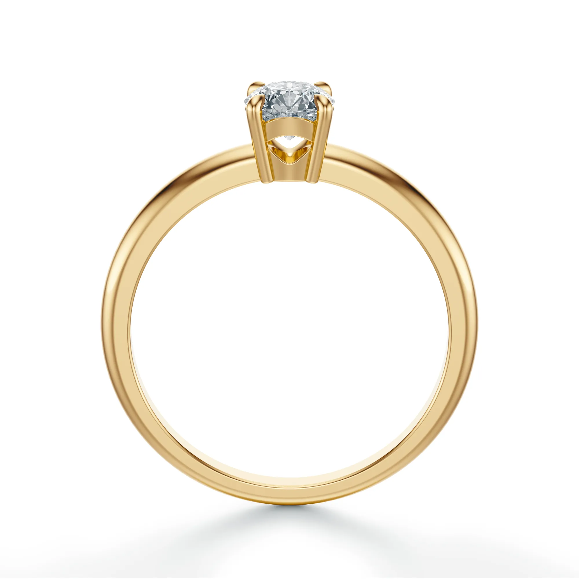 Ten klasyczny pierścionek zaręczynowy wykonany został ze złota o próbie 585 w kolorze żółtym i zachwyca swoją prostotą oraz elegancją. Jego minimalistyczna forma podkreśla ponadczasowy charakter, a centralny, okrągły diament emanuje intensywnym blaskiem, przyciągając spojrzenia subtelnym, ale wyraźnym akcentem luksusu. To wybór, który łączy tradycję z nowoczesnym wyczuciem estetyki.