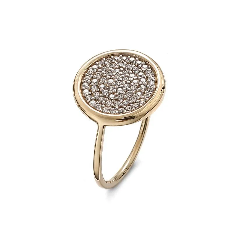 Propozycja dla osób, które lubią odważne projekty i biżuterię, która przykuwa wzrok. Złoty pierścionek koło wysadzane cyrkoniami jest idealny dla odważnych, pełnych klasy kobiet. Niezwykle zmysłowy pierścionek z żółtego złota z okazałą taflą starannie wyłożoną cyrkoniami to projekt o wymownym charakterze. Delikatna złota szyna harmonijnie przechodząca w cargę okalającą liczne cyrkonie tworzy złoty pierścionek, który niezwykle efektownie prezentuje się na dłoni.