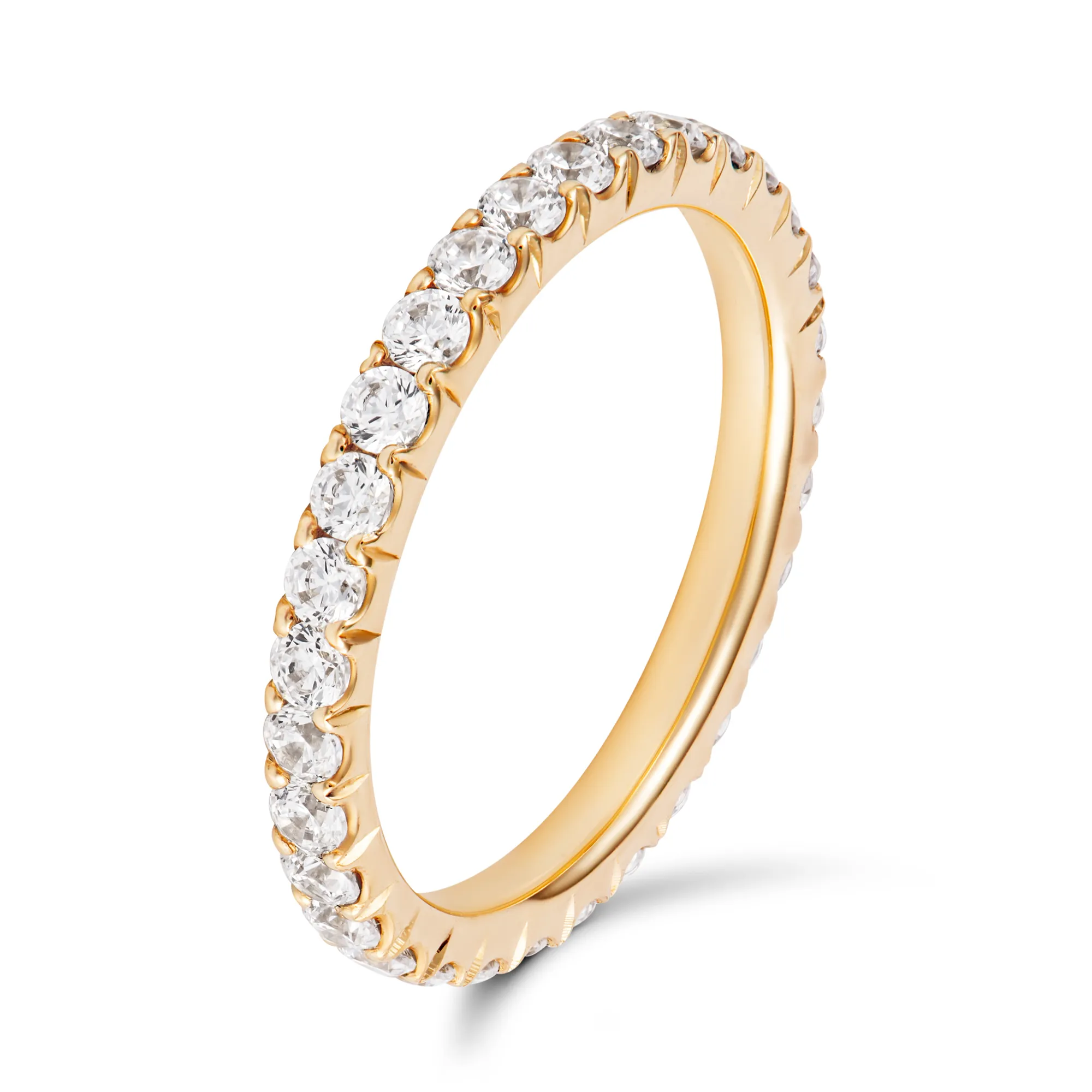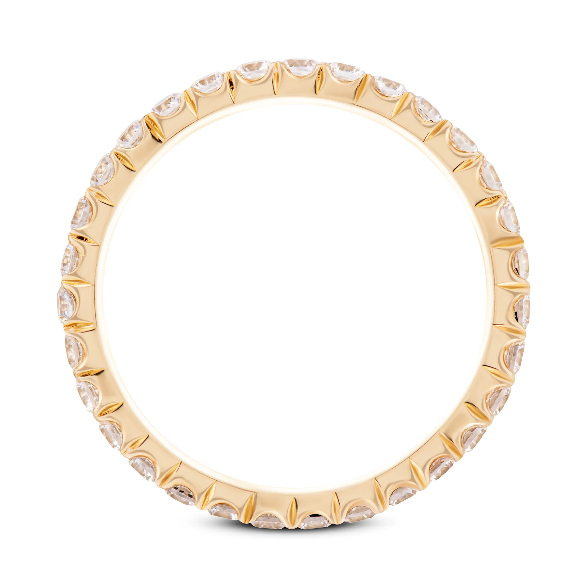 Obrączka z diamentami prezentowana w tej ofercie to niezwykle ciekawy, oryginalny i zgodny z najnowszymi trendami w modzie jubilerskiej wyrób. Klasyczna obrączka wykonana z żółtego złota w całości wysadzana diamentami tej samej wielkości. Gładka i wygodna w noszeniu obrączka z kamieniami przez użycie tak wielu błyszczących diamentów lśni na palcu, skupiając na sobie wzrok.