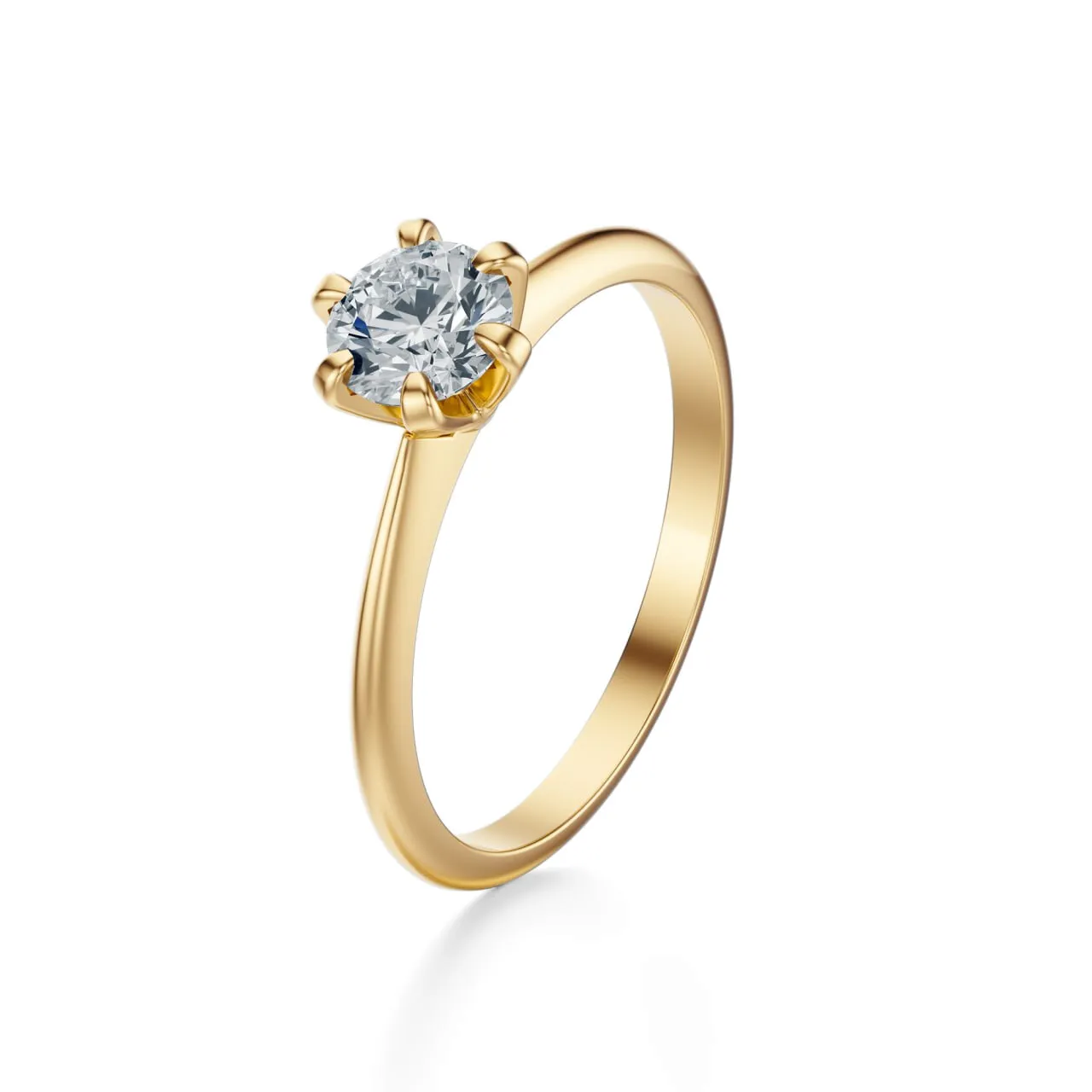 Prezentowany pierścionek zaręczynowy łączy klasyczną elegancję z minimalistycznym wzornictwem. Wykonany z żółtego złota, cechuje się prostotą i ponadczasowym stylem, który zachwyci osoby ceniące subtelną biżuterię.
