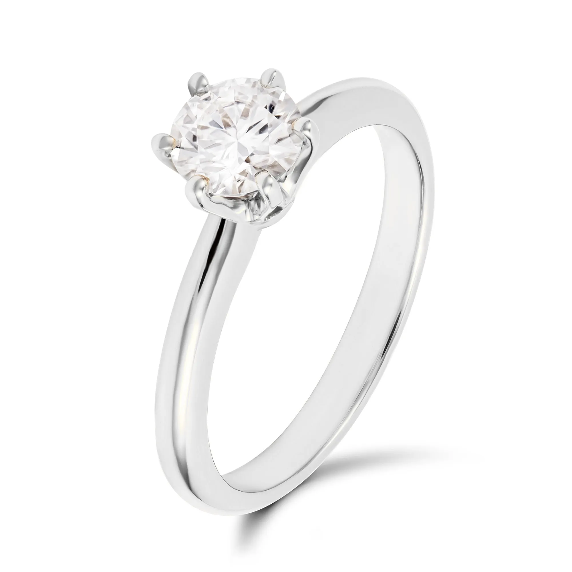 Dla zwolenników piękna białego złota proponujemy klasyczny model pierścionka - złoty pierścionek z diamentem. Okazałej wielkości diament osadzony w tradycyjnej, sześcioramiennej łapce i na solidnych rozmiarów obrączce tworzy klasyczny pierścionek zaręczynowy. Dopracowane szlify pozwalają na idealne rozproszenie światła, dzięki czemu dłoń ozdabia blask kamienia. Dodatkowo białe złoto, dając jasną oprawę, połyskuje równie efektownie jak diamenty. Całość projektu daje imponujący efekt, w którym zakocha się każda kobieta.
