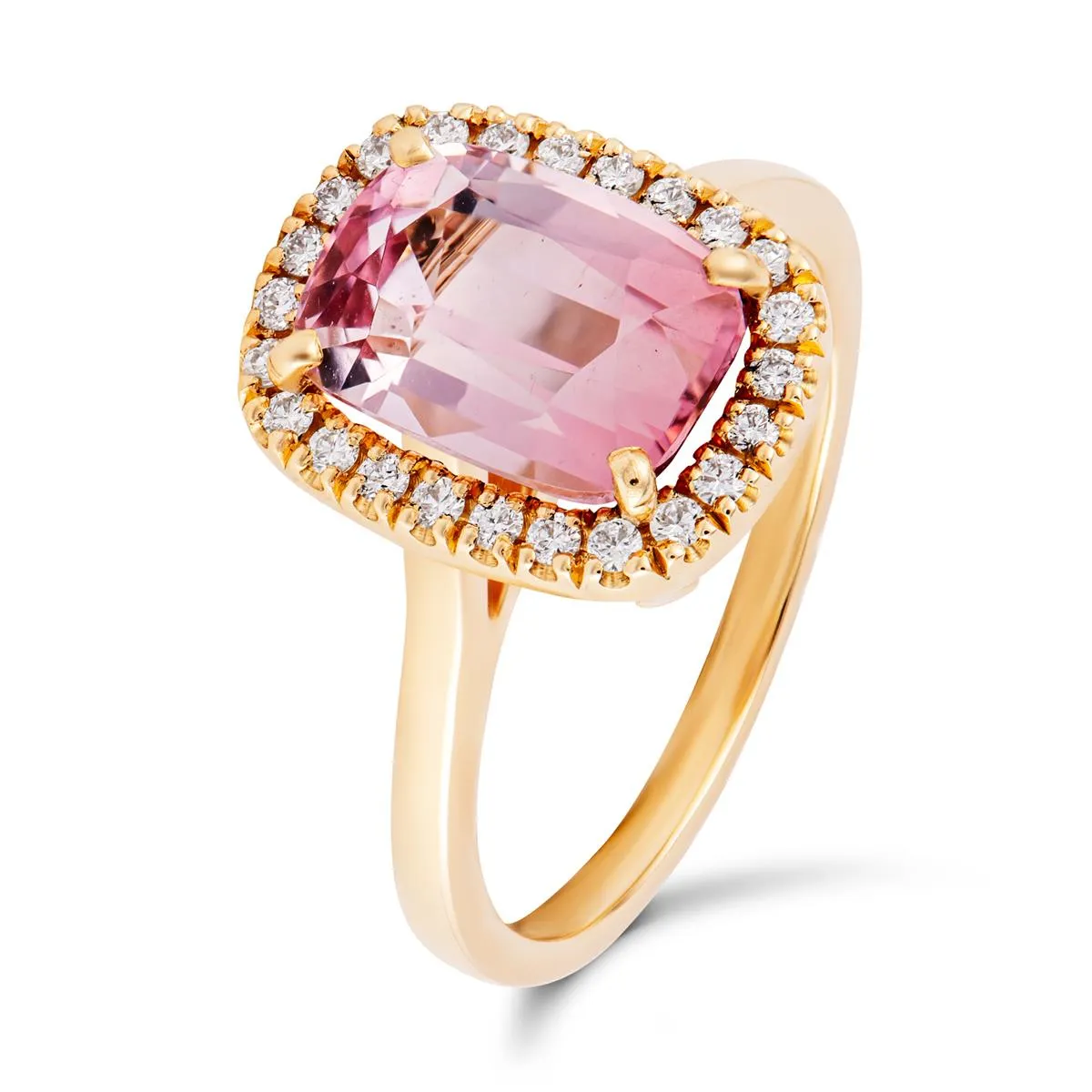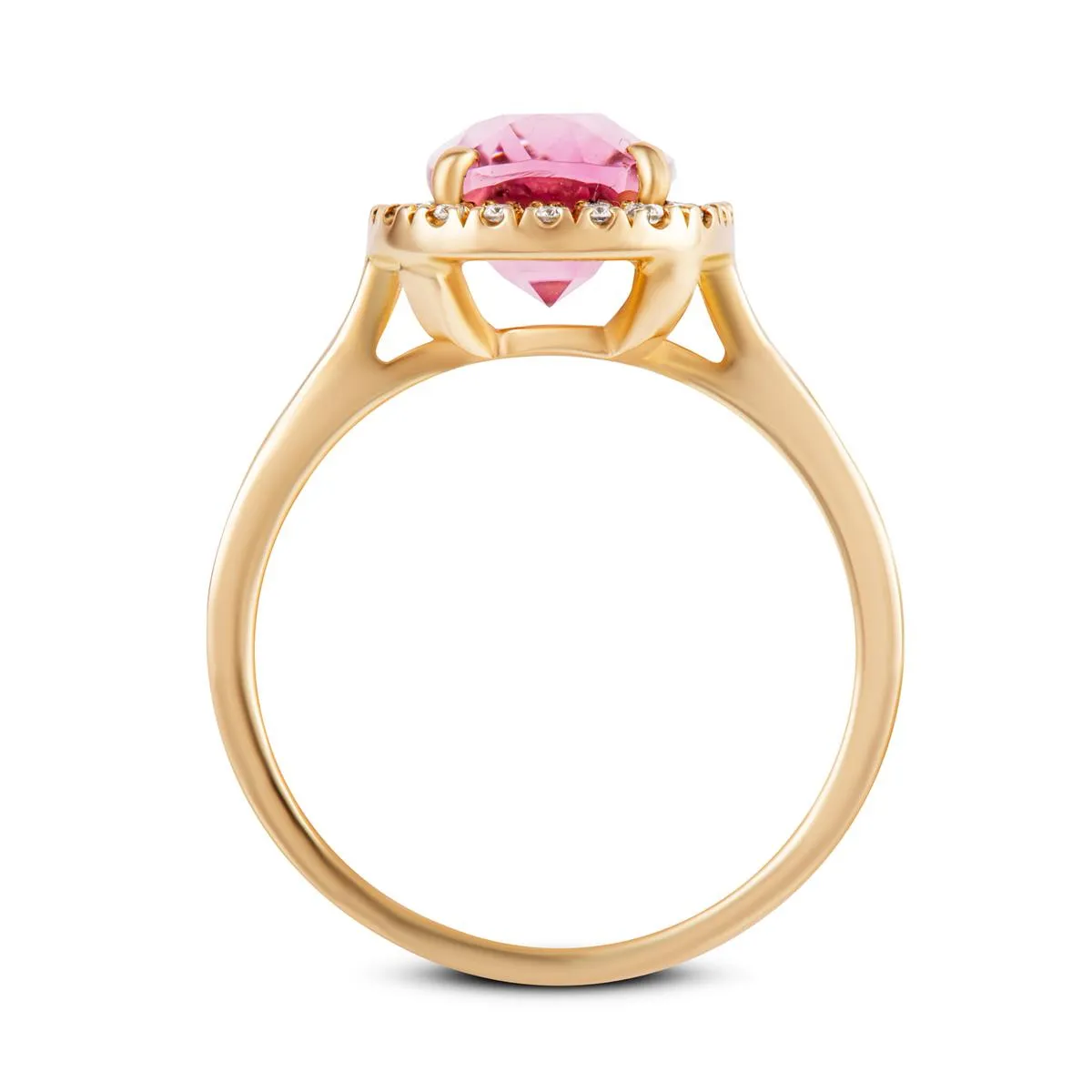 Ten projekt dedykowany jest kobietom, które lubią podkreślać swoją damską duszę, są subtelne, eleganckie i mają doskonały gust. Dodatkowo pierścionek z diamentami i różowym turmalinem docenią osoby śledzące modowe trendy. Połączenie żółtego złota z różem to modowy hit w dziedzinie wyrobów jubilerskich.