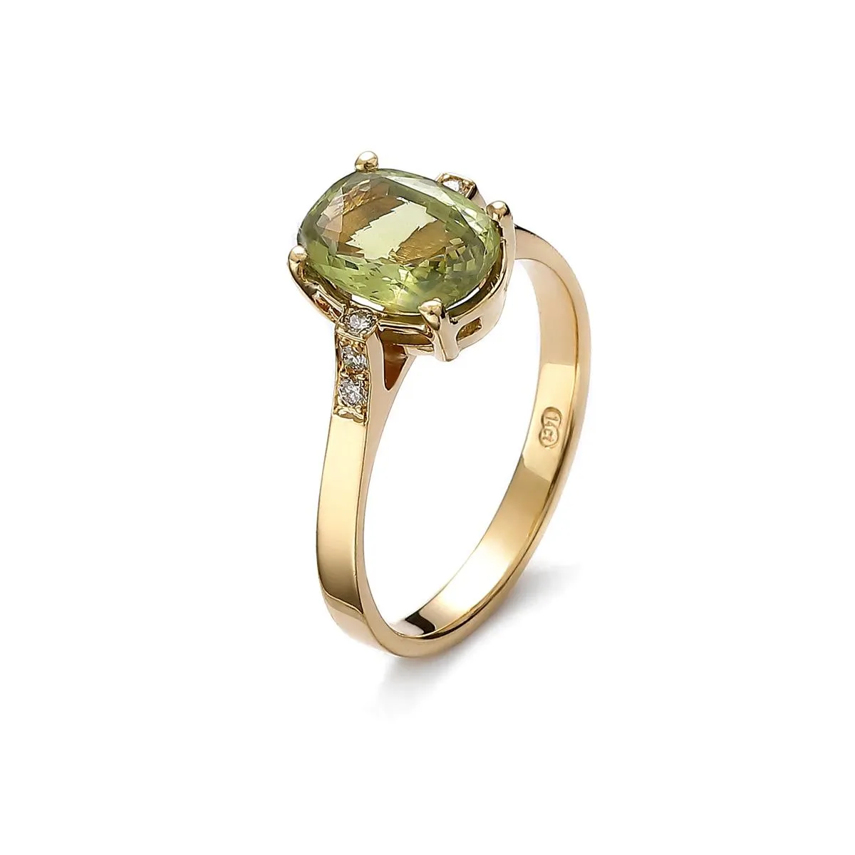 Czy złoto w połączeniu z kamieniem naturalnym może zaskakiwać swoim designem? Otóż tak. Ten złoty pierścionek z aleksandrytem w odcieniach zieleni to subtelna i elegancka biżuteria, która zachwyca swoim wyjątkowym urokiem. Centralnym elementem tego pierścionka jest owalny, kunsztownie oszlifowany aleksandryt w odcieniach zieleni, który stanowi oś estetyki wyrobu. Osadzony w minimalistycznej koronie, kamień naturalny emanuje pięknem, a delikatne łapki podkreślają jednocześnie jego okazały rozmiar i wyjątkowy kolor.