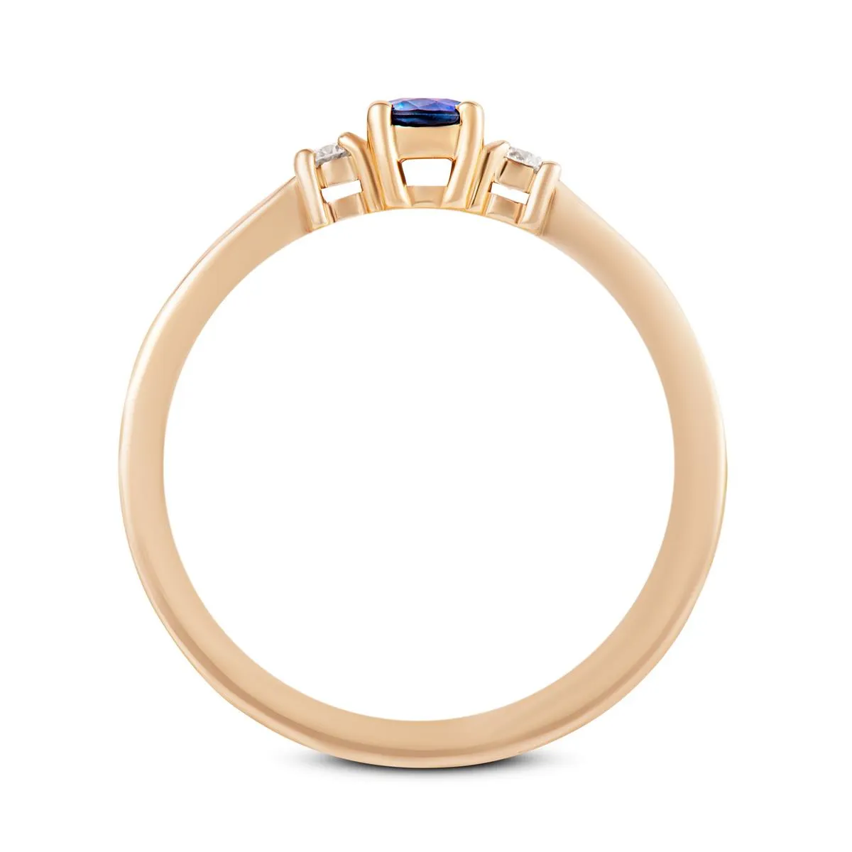 Szafir i diamenty – brzmi jak połączenie idealne i ten projekt to potwierdza. Po obu stronach kamienia złoty pierścionek z szafirem posiada po trzy, niewielkie okrągłe diamenty. Diamenty zarówno w tym wyrobie, jak i w wielu innych, gdzie towarzyszą innym kamieniom naturalnym, optymalnie wydobywają blask z kamieni. Same w sobie efektownie lśnią, skupiając światło i zwracają uwagę na piękno kamienia, który jest w centrum danego elementu biżuterii.