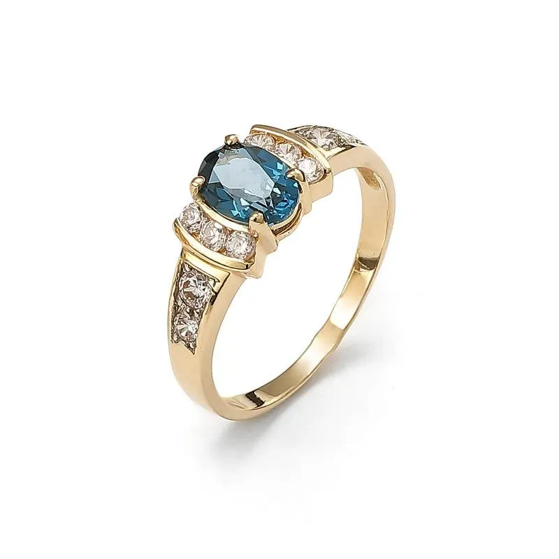 Niebieski topaz i białe cyrkonie zamknięte w złotej oprawie urzekają swoim pięknem i z pewnością przypadną do gustu niemal każdej kobiecie. Połączenie błękitu topazu, dostojności złota oraz błysku syntetycznych kamieni to perfekcja zamknięta w formie pierścionka. Biżuteria z niebieskim topazem znajdzie uznanie wśród osób wrażliwych na piękno, inteligentnych i twórczych. Dodatek ze względu na swoją niebywałą urodę będzie wspaniałym dopełnieniem każdej kreacji.Topaz naturalny